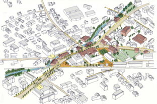 Analyse der Bebauungsstruktur, der Freiräume, der Erschliessung und der Potentialräume. Erheben der Defizite atmosphärisch unzureichender Orte und weiterer Konfliktsituationen. Erarbeiten einer Zentrumsplanung und Mitarbeit bei der Einbettung in die Regeln der Zonenordnung (2/24 vor 2. kant. Vorprüfung). Empfehlen von ortsbildverträglichen Wachstumspotentialen in Volumen und Nutzungen (Abwägung ISOS).